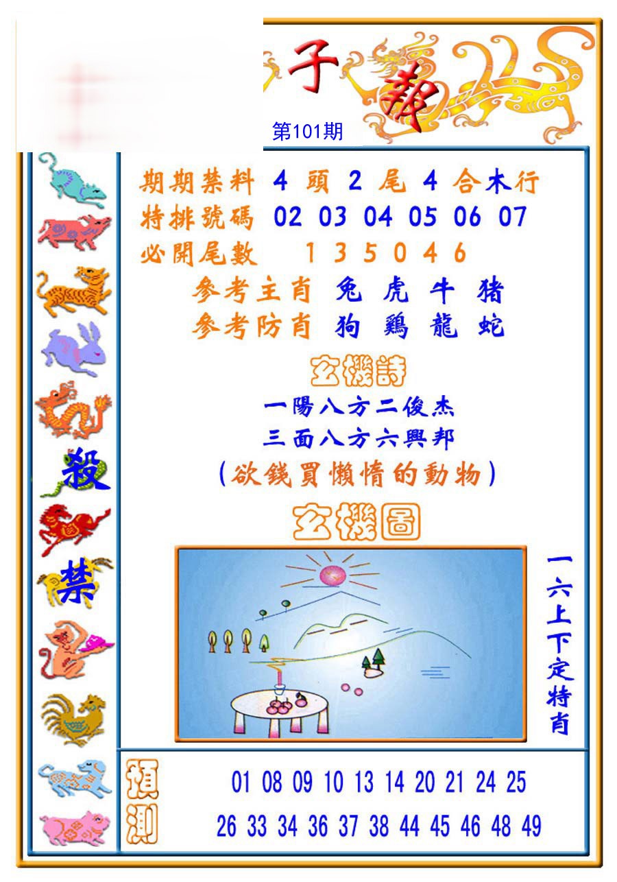 101期绝杀1.肖1.尾 【龙肖5尾】 开 ??????? |