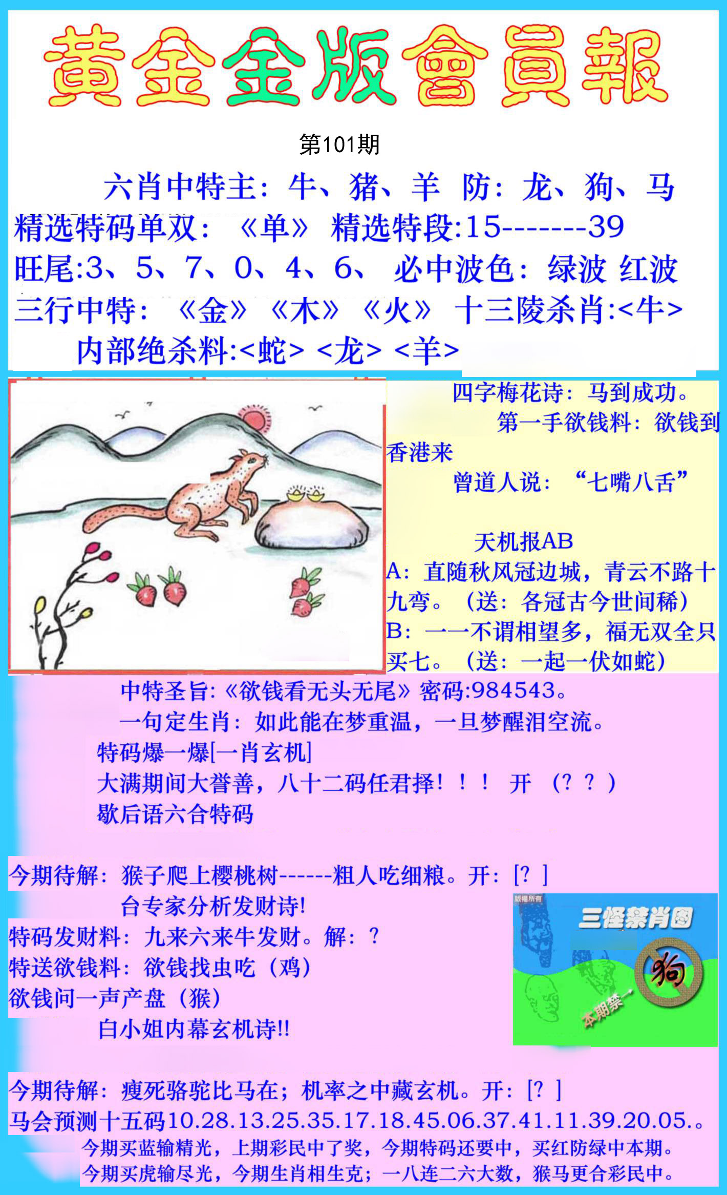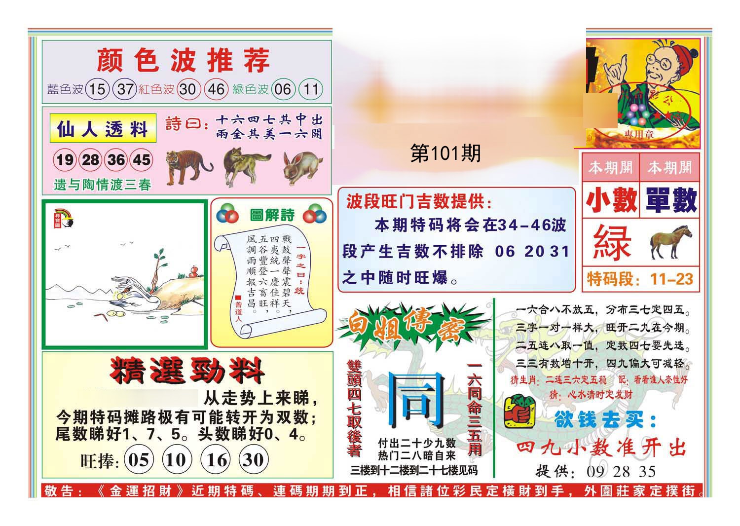 101期四季九肖 【春冬夏】 开 ??????? |