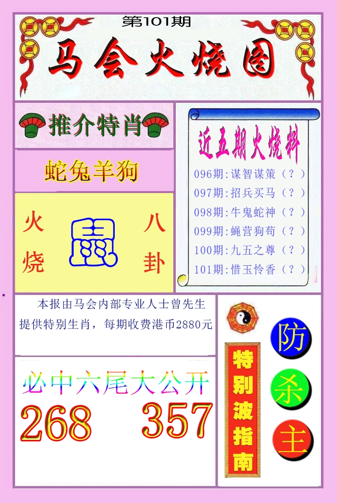 100期绝杀1.肖1.尾 【羊肖6尾】 开 38蛇对 |