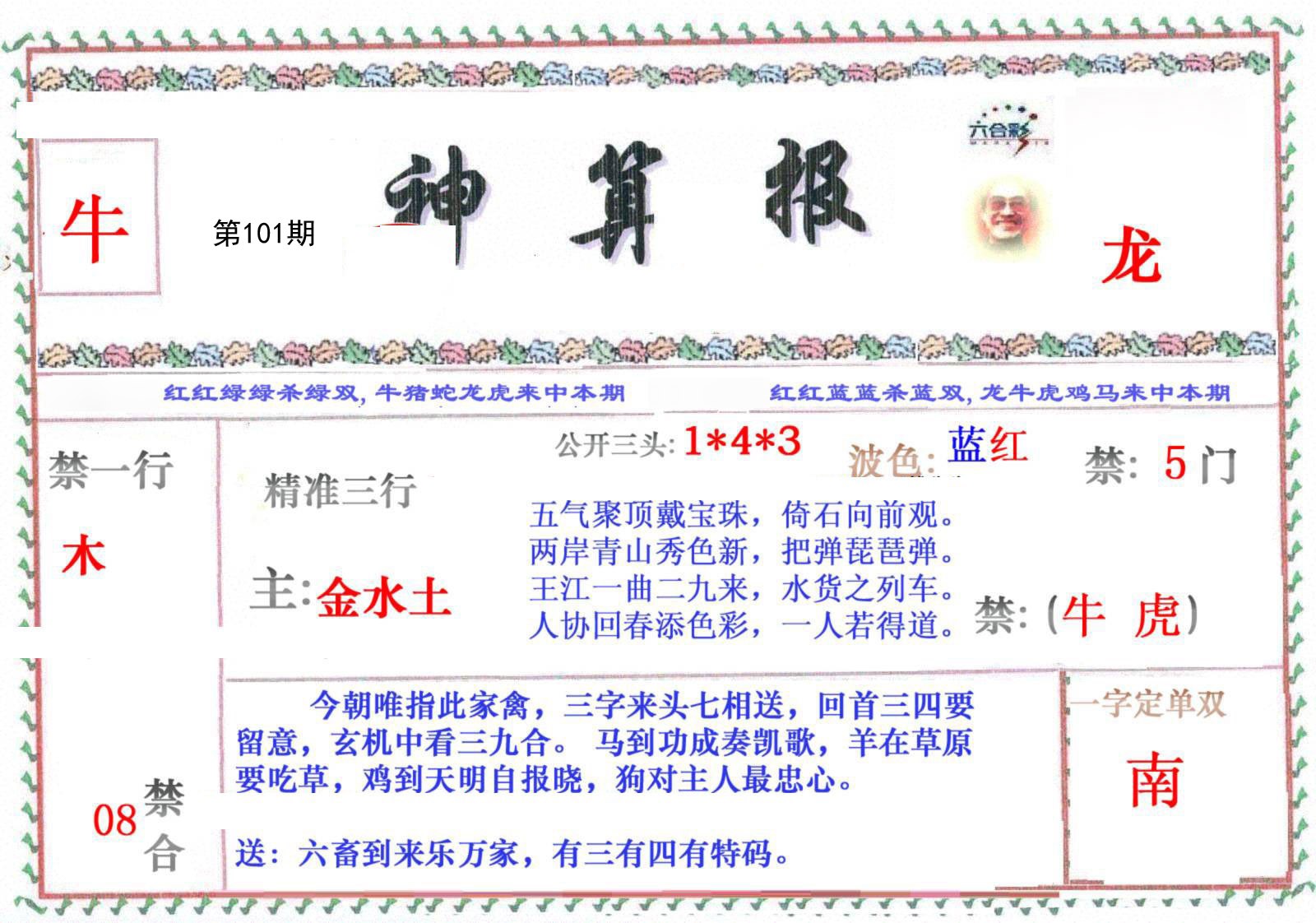 | 101期推荐五肖: 鼠兔虎牛羊 ~~稳准狠 |
